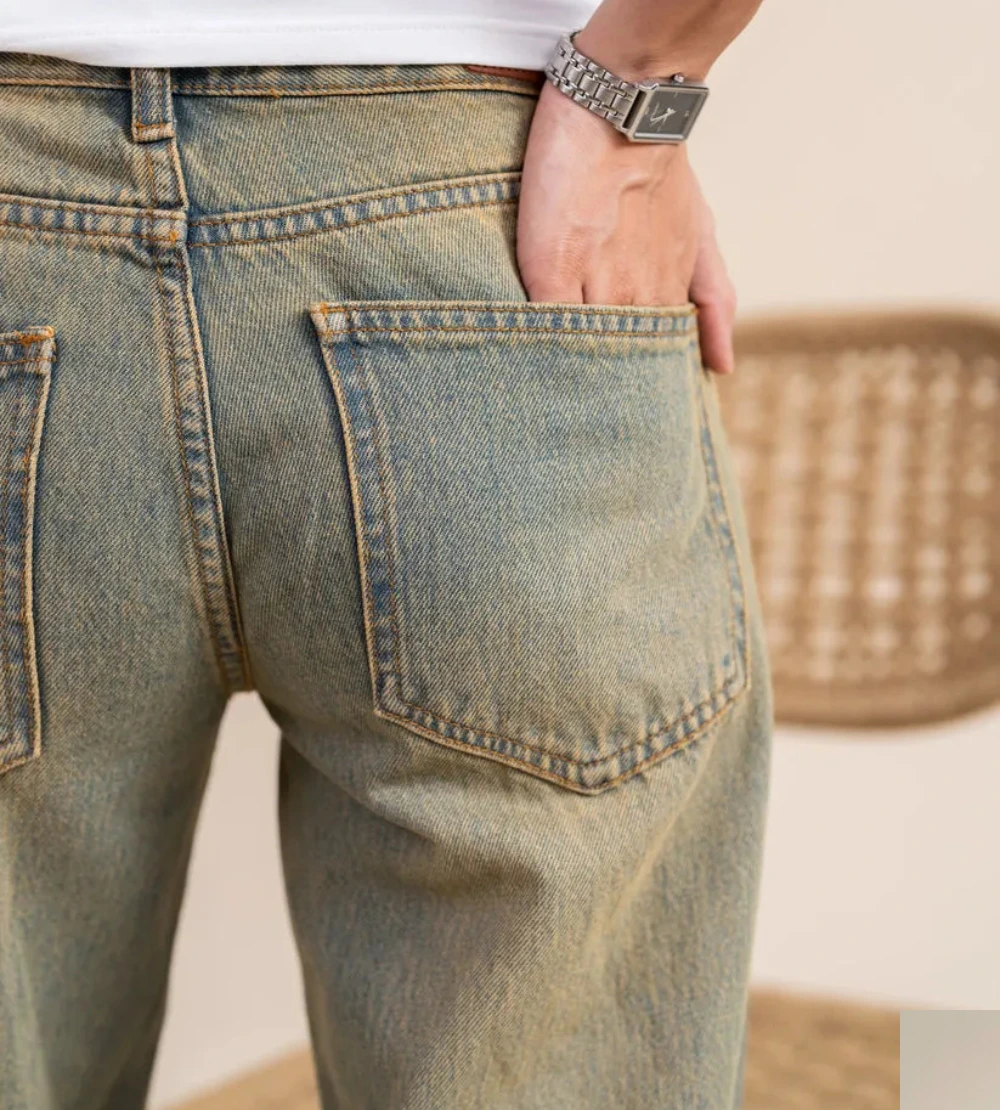 - Sun-washed sand blue denim — soft, faded tone with a warm, natural feel